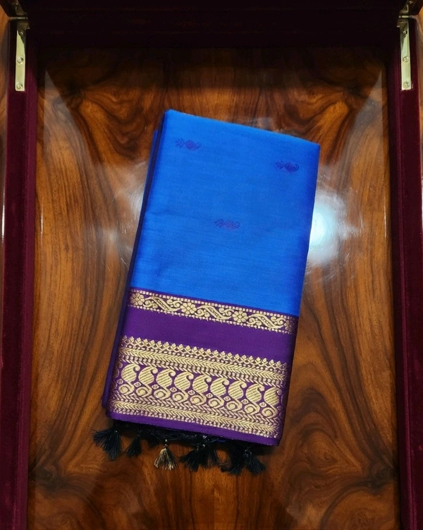 Azure Radiance Kalyani Silk Saree with Elegant Zari Border