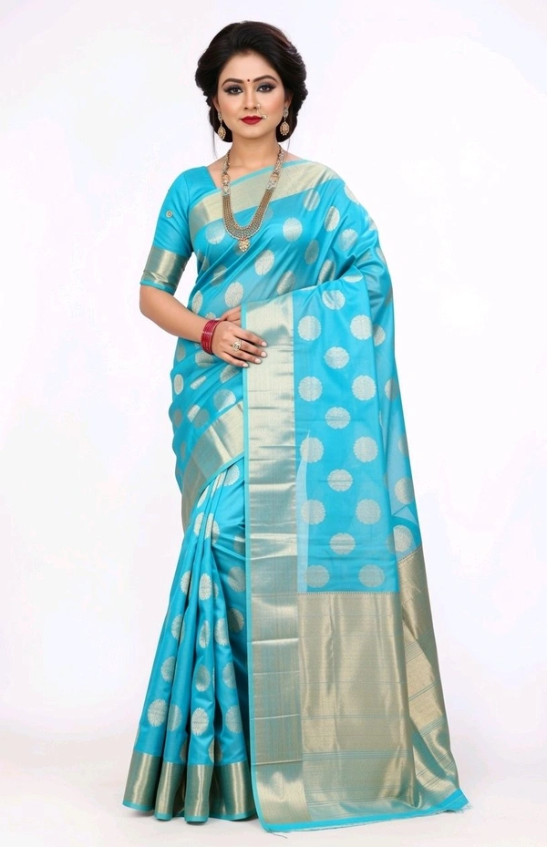 Banarasi Light Saree in Cyan Aqua with Blouse Piece – Elegant Traditional Saree for Women