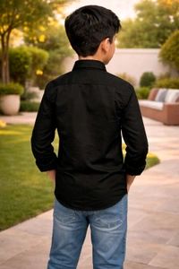 Boys Premium Cotton Blend Slim Fit Shirt | Soft & Smooth Finish (Sleek Look) | Black Colour | Size 32 | Approx. 7–8 Years Stylish Casual Wear