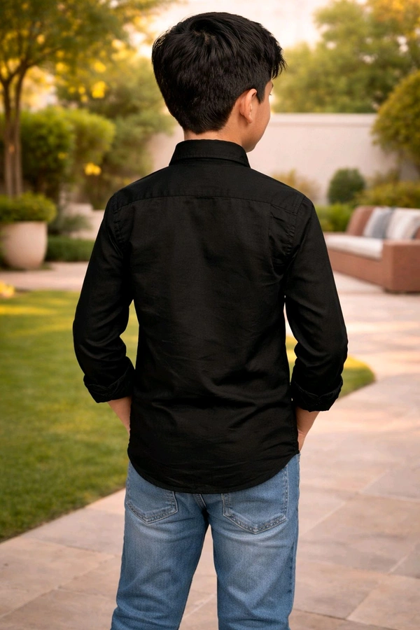 This shirt comes in Size 32, suitable for approximately 7–8 years old boys, ensuring a comfortable and perfect fit. The timeless Black shade makes it ideal for casual wear, parties, and special occasions.