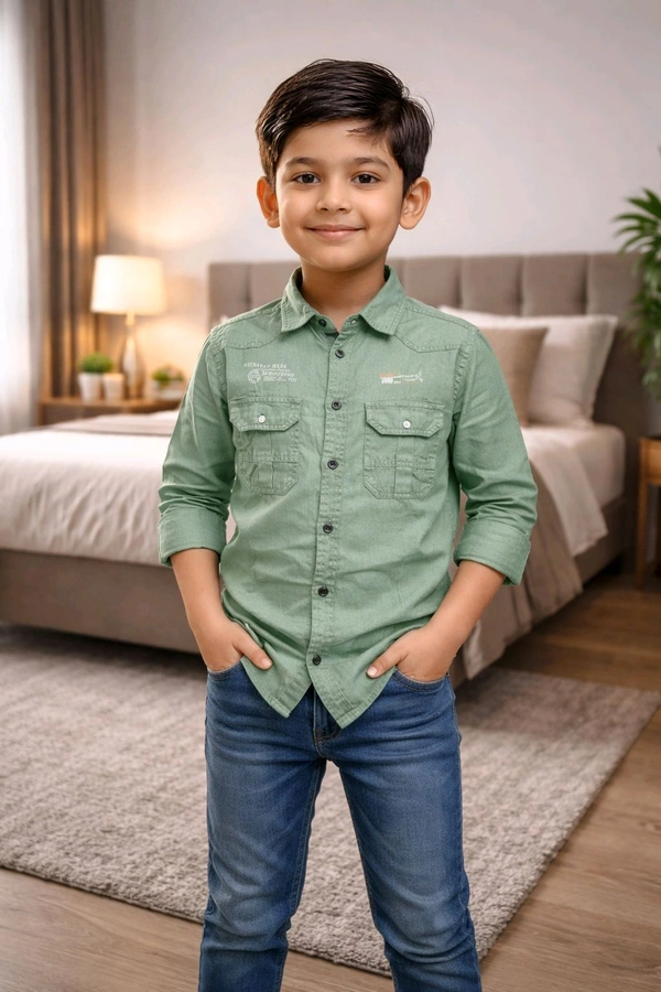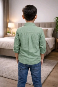 Boys Stylish Solid Sage Green Cotton Shirt | Premium Casual Wear | Size 34 (Approx 9–10 Years).