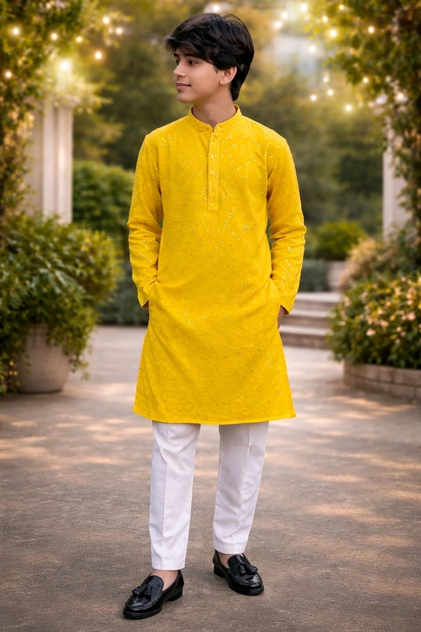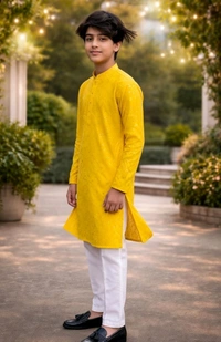 Stylish Bright Sun Colour Boys Panjabi – Perfect for Festive & Traditional Wear