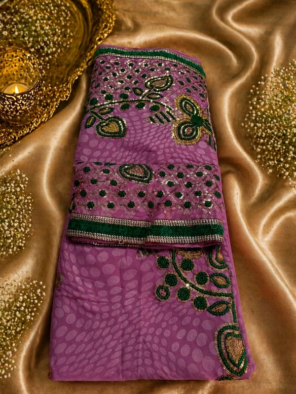 The intricate sequin and embroidery work adds a touch of sparkle, while the detailed designer border elevates its overall appeal. Perfect for festive occasions, parties, and special celebrations, this saree offers a refined balance of tradition and modern style.