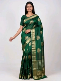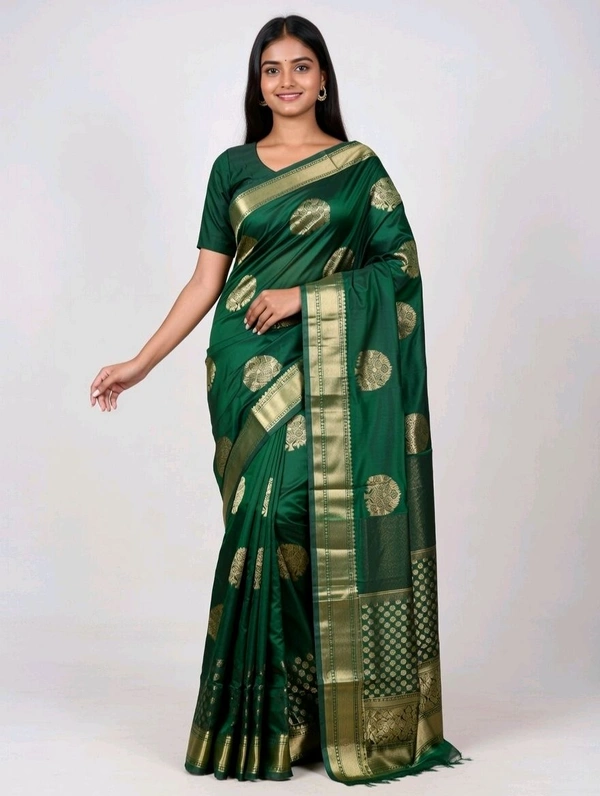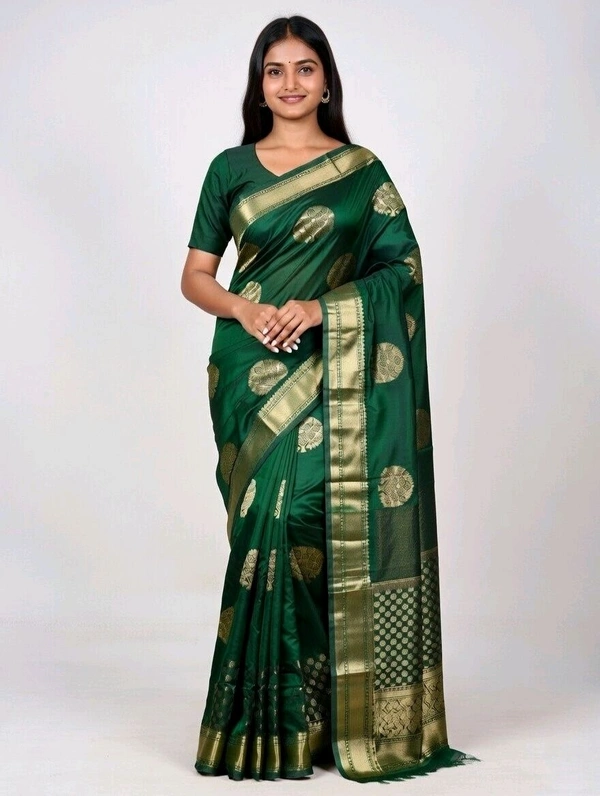 Pooja Dhamaka Slik Saree in Deep Green with Blouse Piece – Traditional Saree for Women