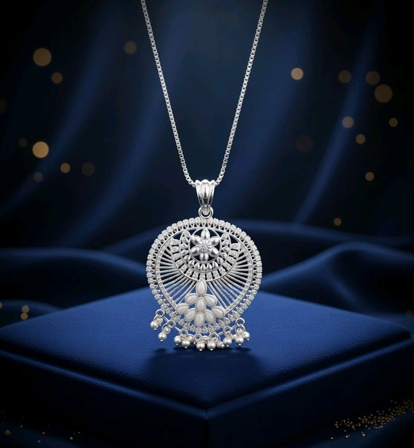 Elegant Silver Plated Designer Round Pendant Necklace for Women (Pack of 2)