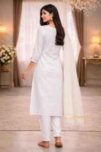 Made from soft and breathable cotton fabric, this outfit ensures all-day comfort. It includes a matching pant and a lightweight dupatta, making it perfect for daily wear, office, and festive occasions.