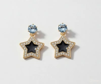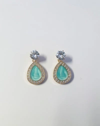 Enhance your everyday style with this elegant Pack of 2 small size drop earrings. The set includes two beautiful designs – a black star shape and a green teardrop shape, both surrounded by sparkling crystal stones and finished with a shiny round stone stud.