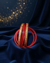 This beautiful set includes 4 gold plated red meenakari bangles designed with detailed floral pattern work. The rich red color combined with elegant gold finish gives a traditional and classy look.