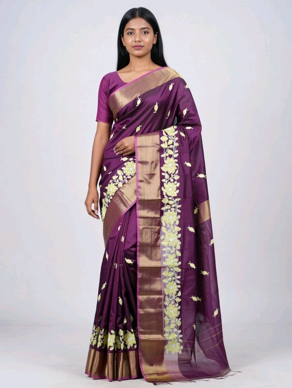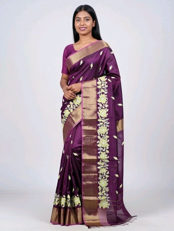Hand Loom Saree in Purple with Blouse Piece – Elegant Traditional Saree