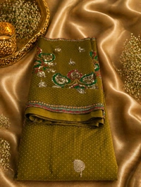 Bring a touch of serene elegance to your wardrobe with this stunning Himalaya green saree. Crafted from premium quality fabric, this saree features a soothing earthy green tone inspired by the calm beauty of the Himalayas.