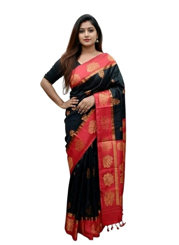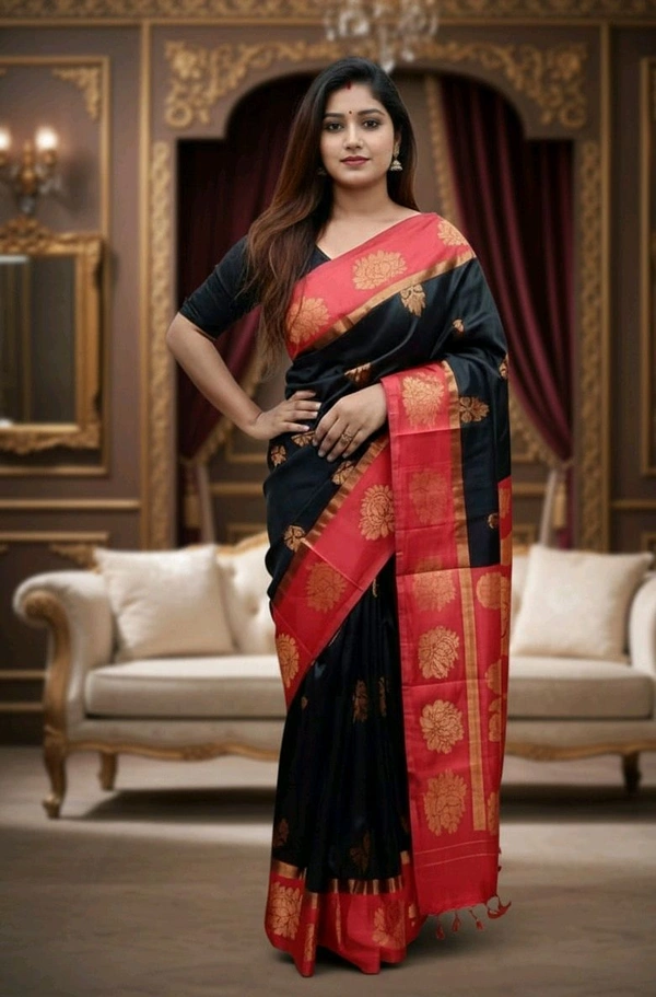 Kakinara Silk Saree in Black & Red with Blouse Piece – Classic Traditional Saree