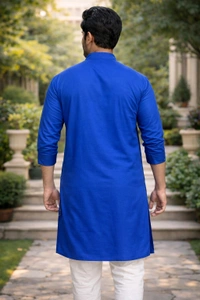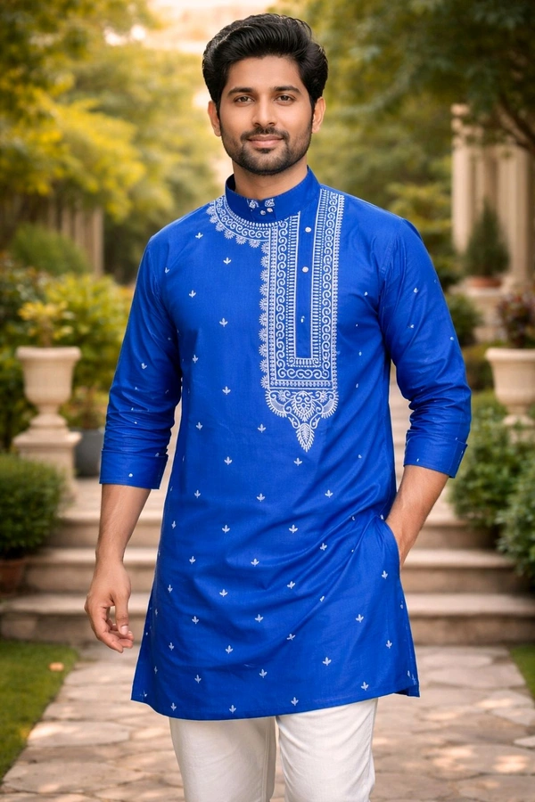 Men’s Cotton Embroidered Kurta | Dodger Blue Ethnic Wear | Traditional Design | Full Sleeve | Size 42 | Length 39 | Only Kurta