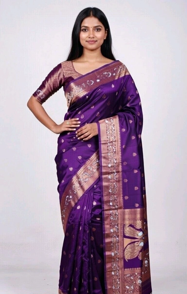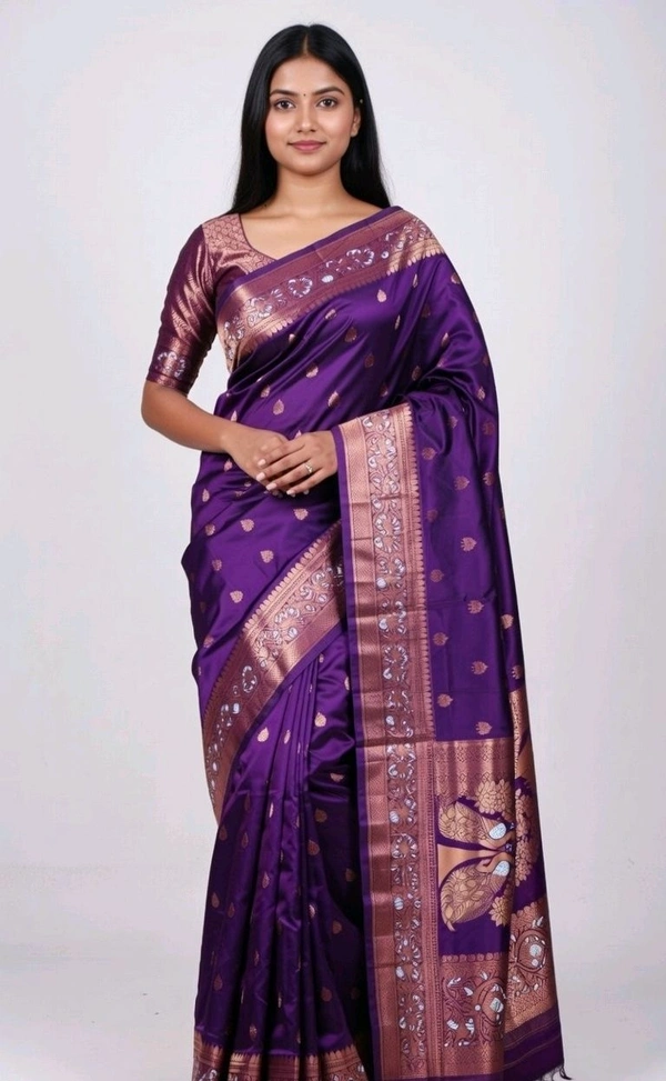 Misti Doi Slik Saree in Purple with Blouse Piece – Elegant Traditional Saree for Women | Party & Festive Wear