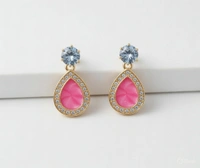 Pack of 2 Small Gold Plated Designer Drop Earrings for Women (Star & Pink Teardrop)
