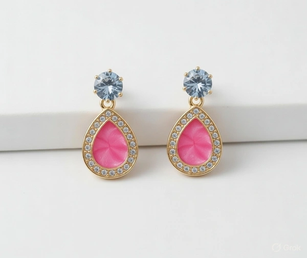 Enhance your everyday style with this elegant Pack of 2 Small Gold Plated Designer Earrings. This combo includes two beautiful small-size designs – a black star-shaped drop earring and a pink teardrop stone earring.