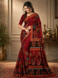 Premium Maroon Wine Pure Cotton Printed Saree (5.5 Meter)