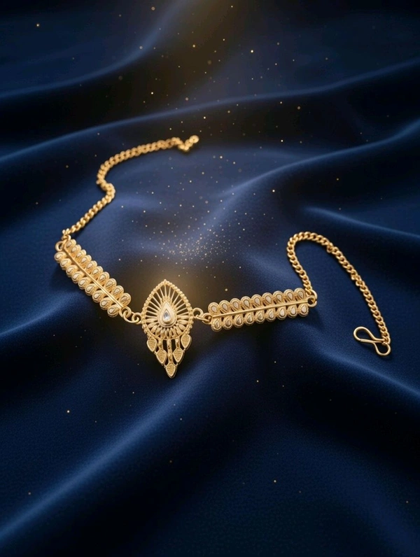 This jewellery set adds a graceful and luxurious touch to saree, lehenga, and ethnic outfits. A perfect choice for bridal look or festive styling.