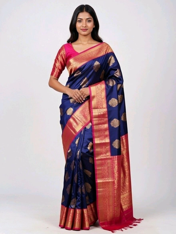 Radha Rani Slik First Time Saree in Deep Blue with blouse Piece– Elegant Traditional Saree
