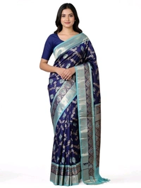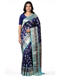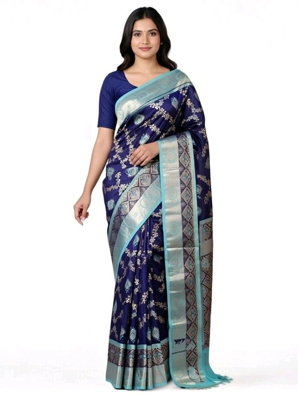 Raj Valli Slik Saree in Navy Blue Colour with Blouse Piece