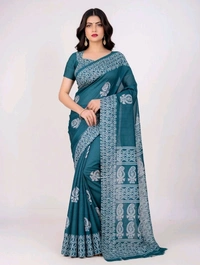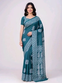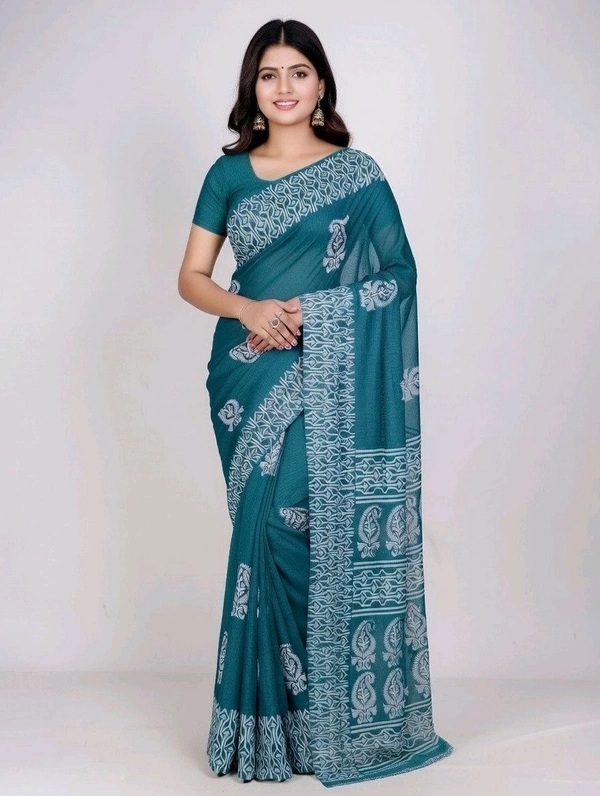 pure slik Saree in Eastern Blue with Blouse Piece – Elegant Traditional Saree for Women