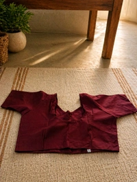 Rosewood Cotton Blouse with Front Hook and Glass Sleeves
