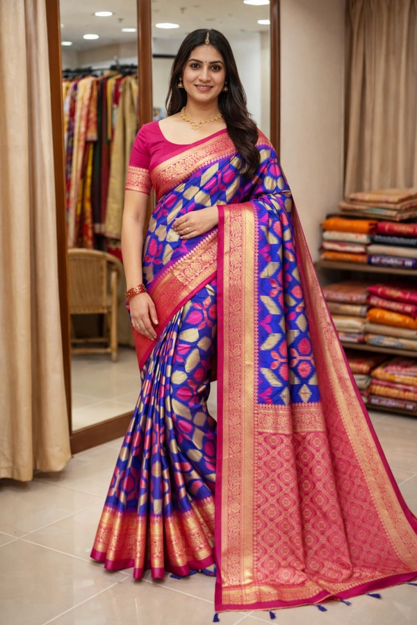 Royal Blue & Rani Pink Zari Weaving Banarasi Style Silk Saree