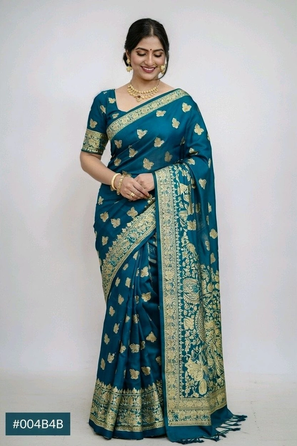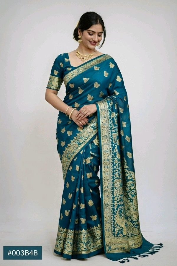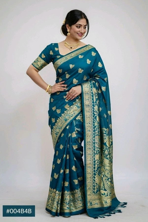 Silky Reshmi Saree in Sherpa Blue with Blouse Piece – Elegant Traditional Saree for Women
