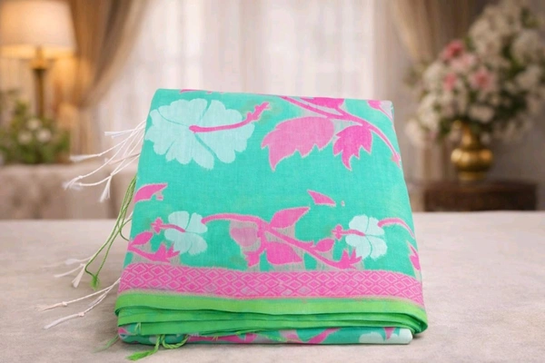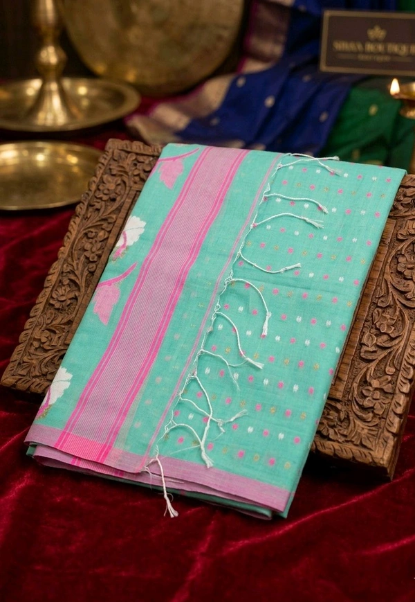 Spring Green Jamdani Handloom Soft Cotton Saree with Elegant Buti Design