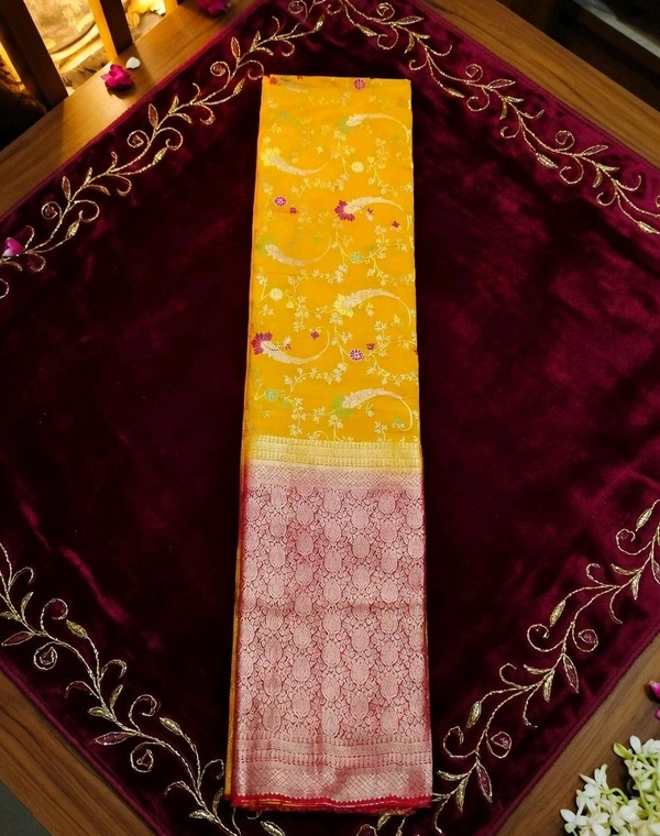 Super Nova Yellow Khadi Silk Saree with Floral Zari Design