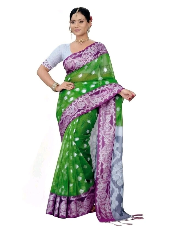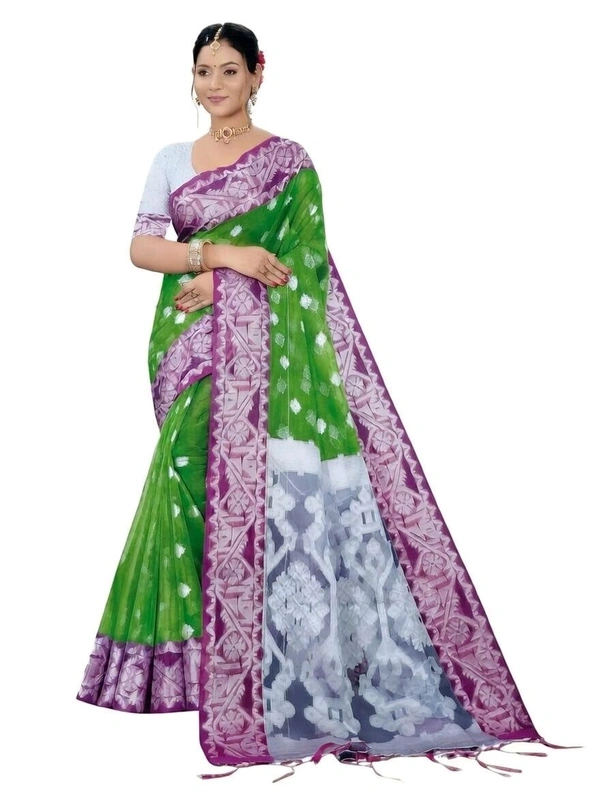 Maslin Saree in Green Colour with Blouse Piece – Elegant Traditional Saree