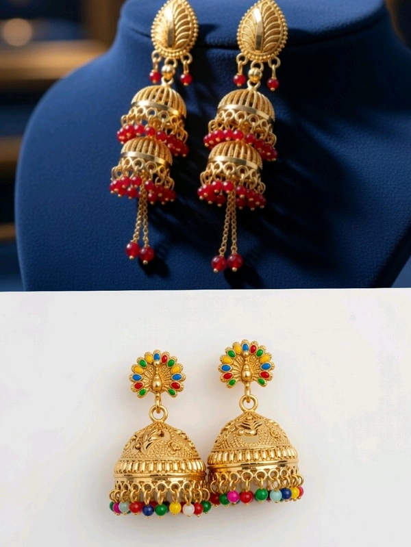 Traditional Gold Plated Designer Jhumka Earrings for Women (Pack of 2)