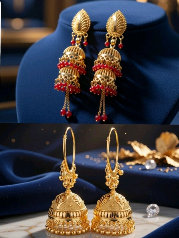 Traditional Gold Plated Designer Jhumka Earrings for Women (Pack of 2)