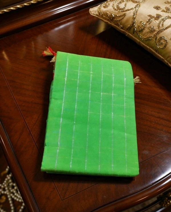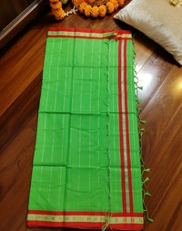 Traditional Green Tant Saree with Red Check Border