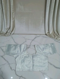 White Silk Designer Blouse – Round Neck & Deep V Back