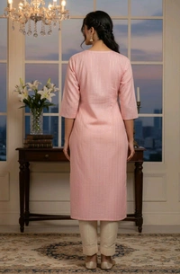 Women Solid Soft Peach Pink Cotton Blend Kurti (M Size, 3/4 Sleeve, Knee Length)