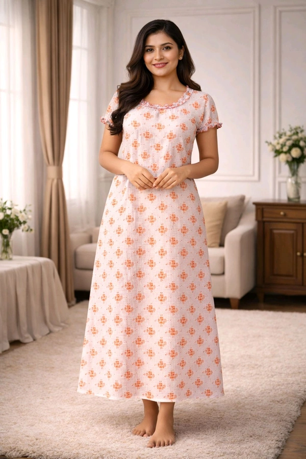 Women’s Cotton Nighty | Orange Printed Sleepwear | Soft & Comfortable | Short Sleeve | Free Size | Relaxed Fit