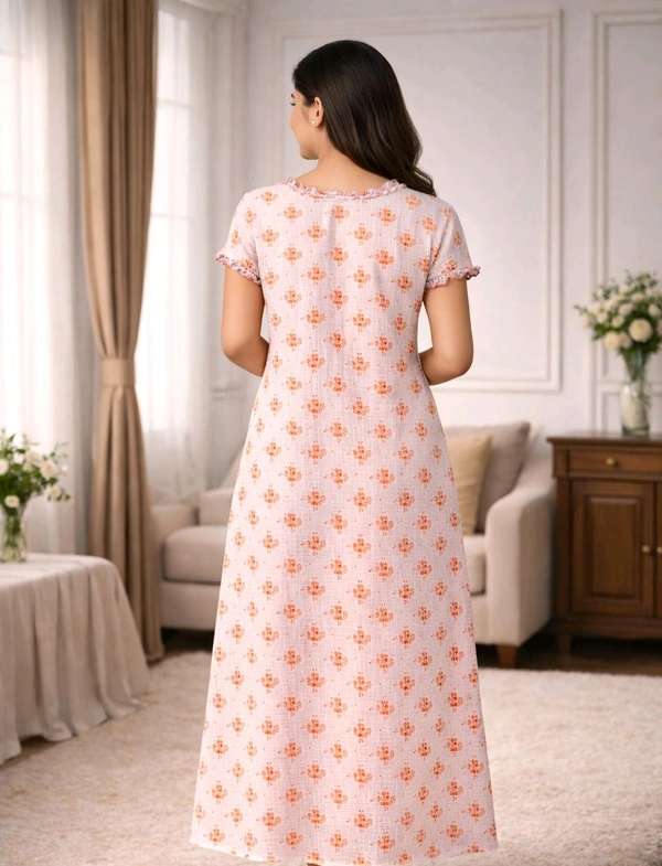 Designed in a free size, this nighty fits comfortably on different body types, making it an ideal choice for home wear and nightwear.