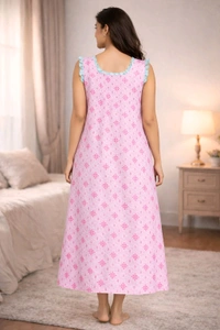 Women’s Cotton Nighty | Pink Printed Sleepwear | Soft & Breathable | Sleeveless | Free Size | Comfortable Fit