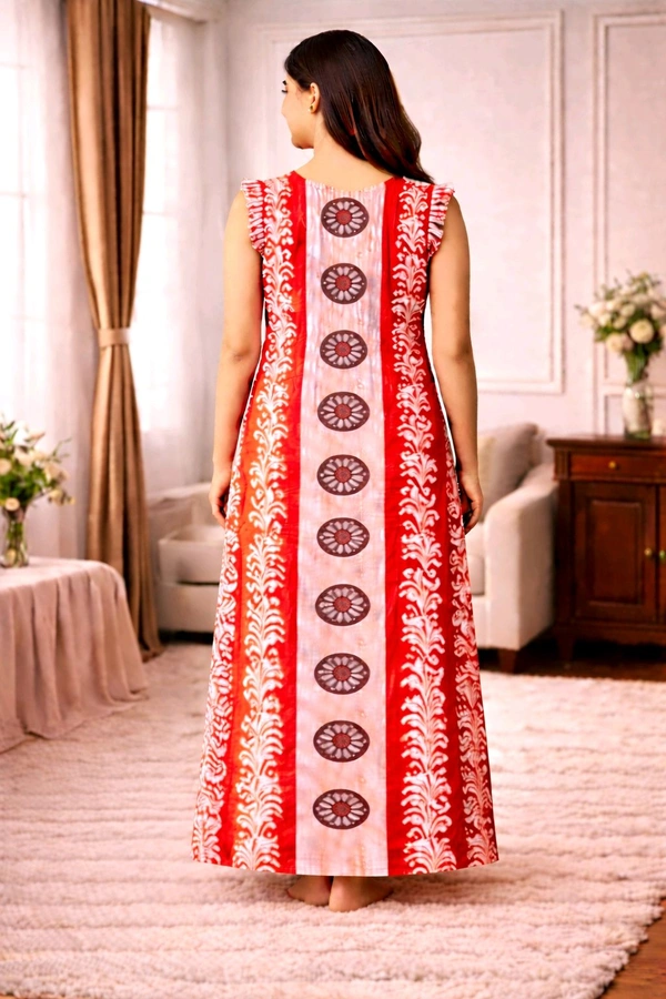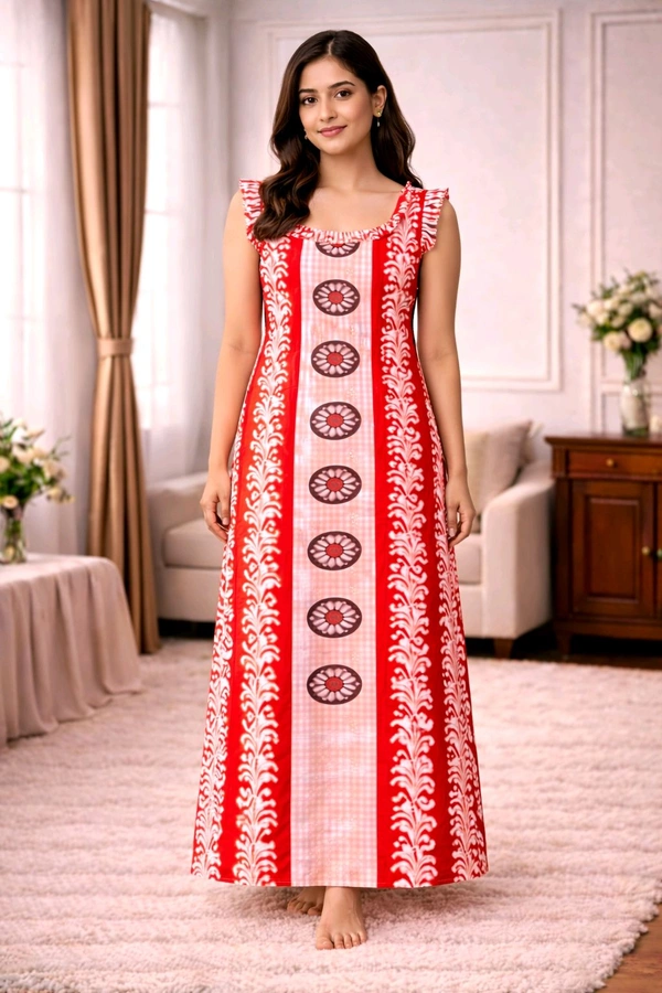 Women’s Cotton Nighty | Red Printed Sleepwear | Soft & Comfortable | Sleeveless | Free Size | Relaxed Fit