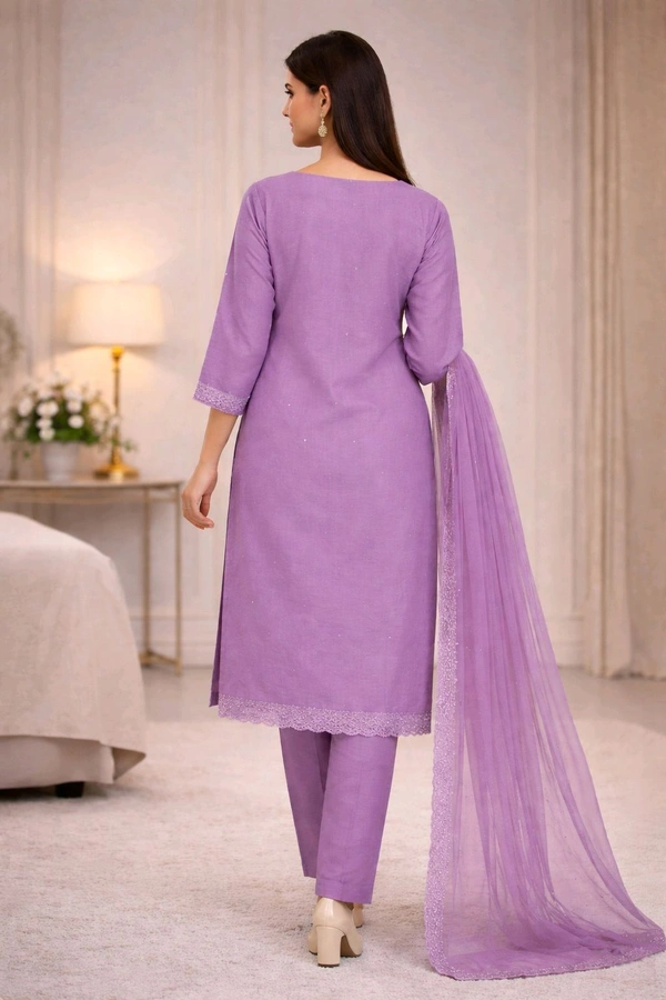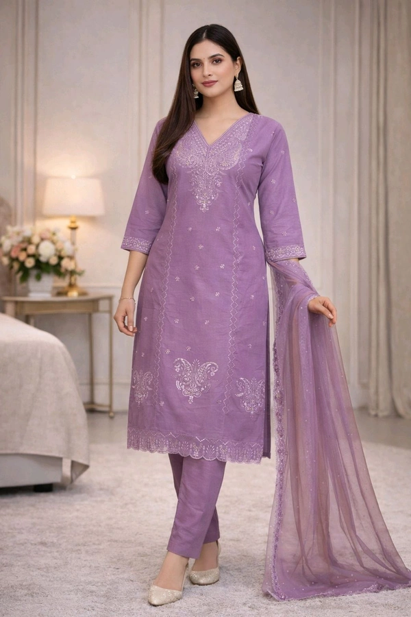 Women’s Lavender Kurta 3-Piece Set | Elegant Embroidered Ethnic Wear | Soft Fabric Suit with Dupatta | XXL Size