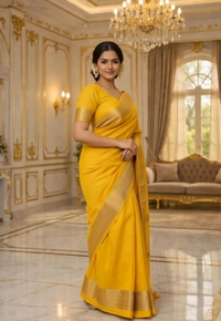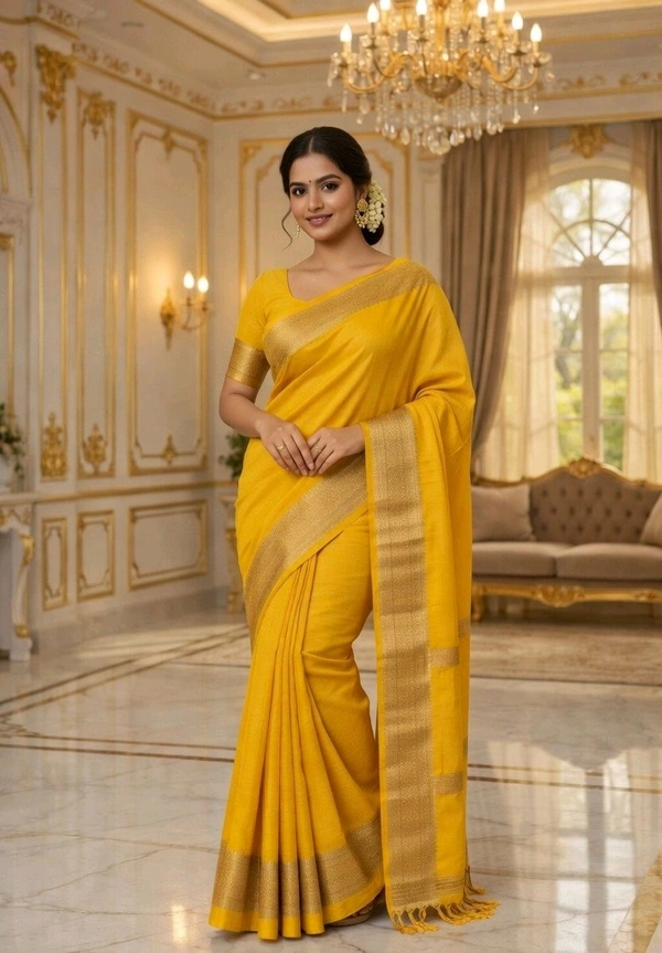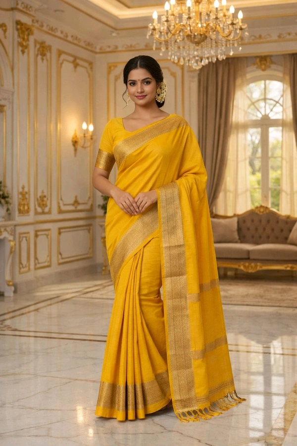 Yellow Fuliya Cotton Handloom Saree with Golden Border | Traditional Elegant Saree for Women